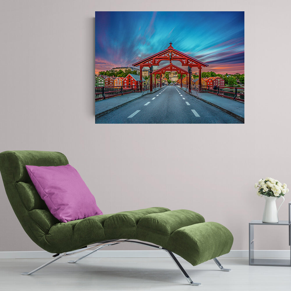 Gamle Bybro, also known as "The Old Town Bridge," is one of Trondheim's most iconic landmarks. Built in 1861, this charming red-painted bridge spans the Nidelva River, connecting the city's historic Bakklandet district with the downtown area. Its distinctive arch and decorative gates, often referred to as the "Gate of Happiness," offer a picturesque view of the colorful wooden wharf buildings lining the riverbanks. A popular destination for both locals and visitors, Gamle Bybro exudes a serene atmosphere, particularly at sunrise or sunset when the soft light enhances its beauty. The bridge is not just a pathway but a symbol of Trondheim's rich cultural heritage and history.
