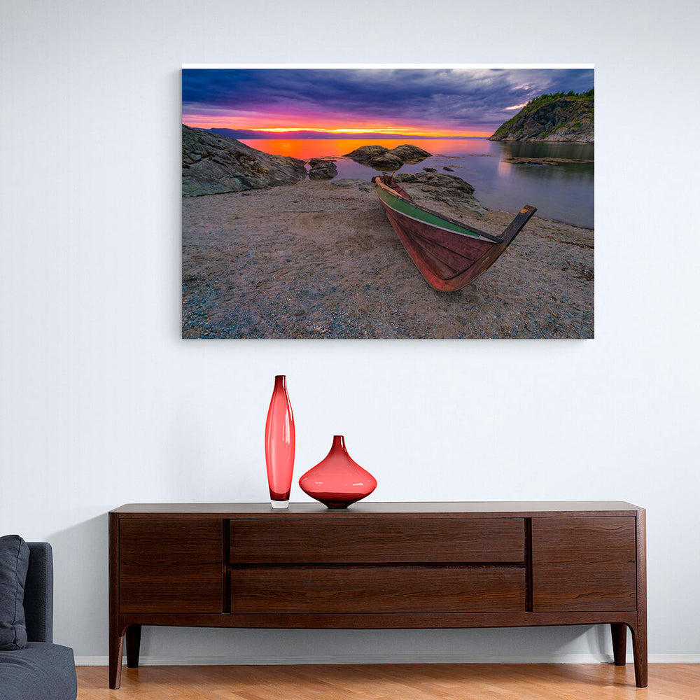 The printed canvas is mounted on the frame and ready to hang on the wall.